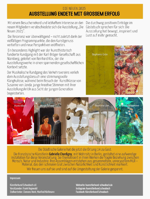 Sieben neue Mitglieder stellen sich in der Städtischen Galerie Schwabach vor.