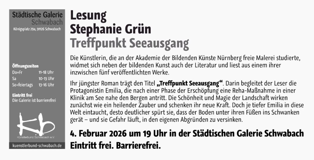 Die feierliche Eröffnung der Ausstellung 2.0, die im Petz-Haus Schwarzenbruck gezeigt wird, findet am 09. Oktober 2025 um 19 Uhr statt.