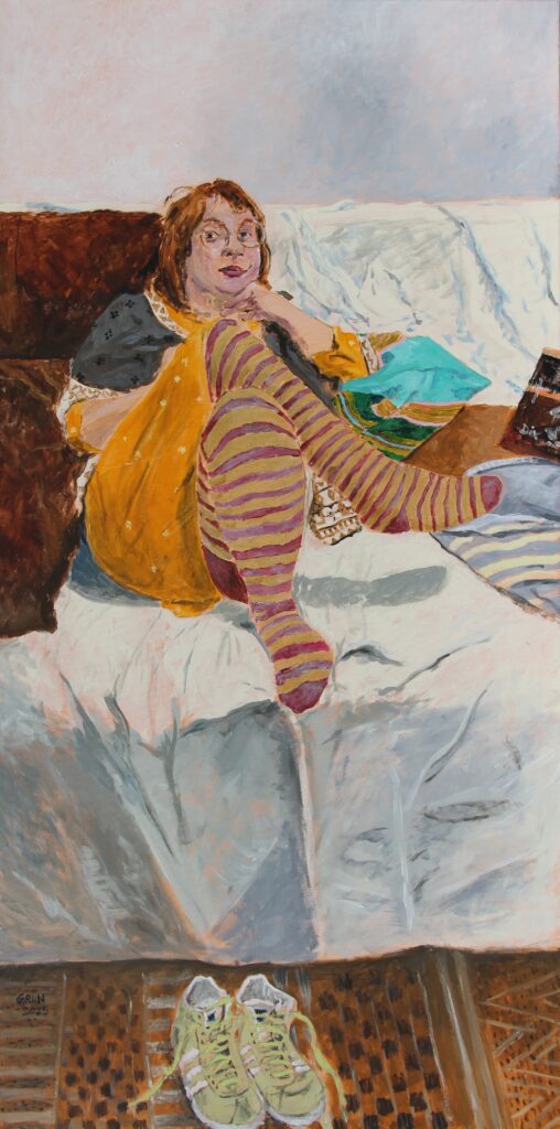 Sockini 2024; Bleistift, Acryl auf Leinwand; 120 cm x 60 cm