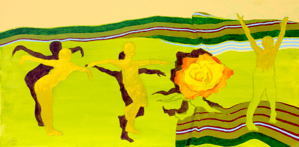 Tanzende Goldfinch 2026; Acryl auf Leinwand; 60 cm x 120 cm